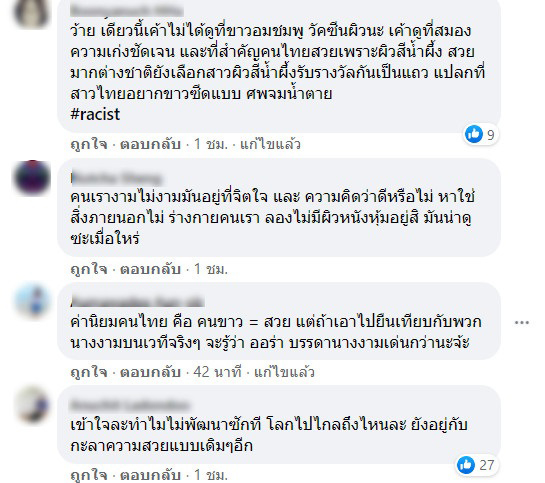 งานนี้ทำเอาชาวเน็ตเดือดสนั่น มองว่าทัศนคติของผู้โพสต์แย่มากที่คิดแบบนี้ โลกของนอกพัฒนาไปถึงไหนกันแล้ว โตมาอย่างไรถึงได้คิดว่าความสวยคือความขาว ความสวยไม่ได้วัดกันที่สีผิว ซึ่งนางงามทั้ง 2 คน งดงามที่จิตใจ ทัศนคติ ความสามารถ และความฉลาด ไม่ควรตัดสินคนแต่เพียงรูปลักษณ์ภายนอก ความคิดแบบนี้สะท้อนจิตใจของผู้โพสต์เลยว่าอยู่ระดับไหน แถมยังเป็นเพจหน่วยงานภาครัฐอีกด้วย