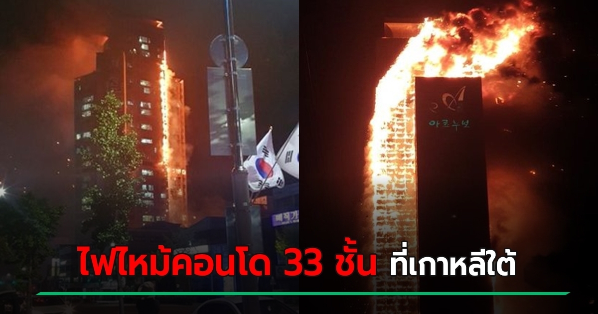 เกิดเหตุไฟไหม้คอนโดสูง 33 ชั้นในเกาหลีใต้ โหมกระหน่ำตั้งแต่ชั้น 12 ไล่ขึ้นไปถึงชั้น 33 คนหนีตายไปชั้นดาดฟ้ายังไม่พ้นเพลิง ต้องสั่งย้ายโดยด่วน
