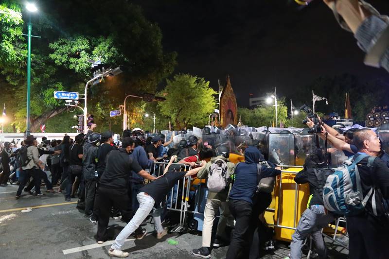ในขณะเดียวกัน อีกฟากก็ได้เกิดเหตุการณ์การรวมตัวของกลุ่มผู้สนับสนุนรัฐบาล มีการยั่วยุกัน เช่น การขี่มอเตอร์ไซค์เร่งเครื่องใส่บริเวณที่ผู้ชุมนุมคณะราษฎรอยู่ และในช่วงบ่ายก็เกิดการปะทะกันของ 2 ฝ่าย ตำรวจต้องพูดผ่านเครื่องขยายเสียง และจับทั้ง 2 ฝ่ายแยกจากกัน