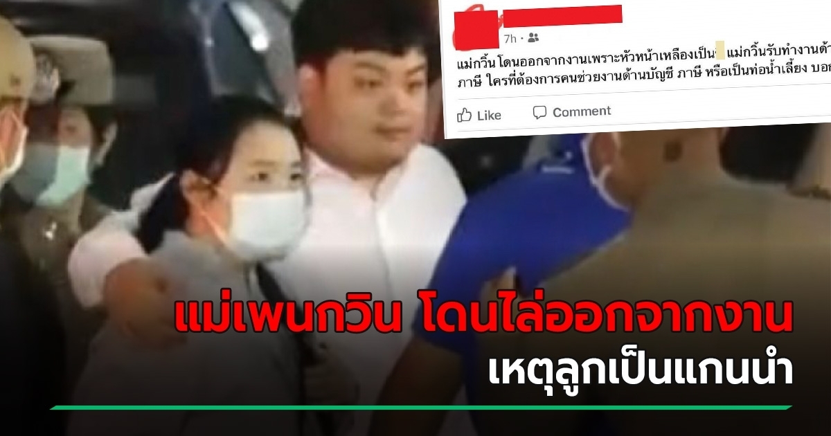 แชร์ว่อนโซเชียล แม่สุ คุณแม่ของ เพนกวิน พริษฐ์ โดนไล่ออกจากงาน เพราะลูกเป็นแกนนำม็อบคณะราษฎร ชาวเน็ตให้กำลังใจเพียบ โอนเงินบริจาคให้ แม่พูดคมบาดใจ มีหน้าที่ดูแลให้เขาพร้อม ก่อนส่งคืนมวลชน