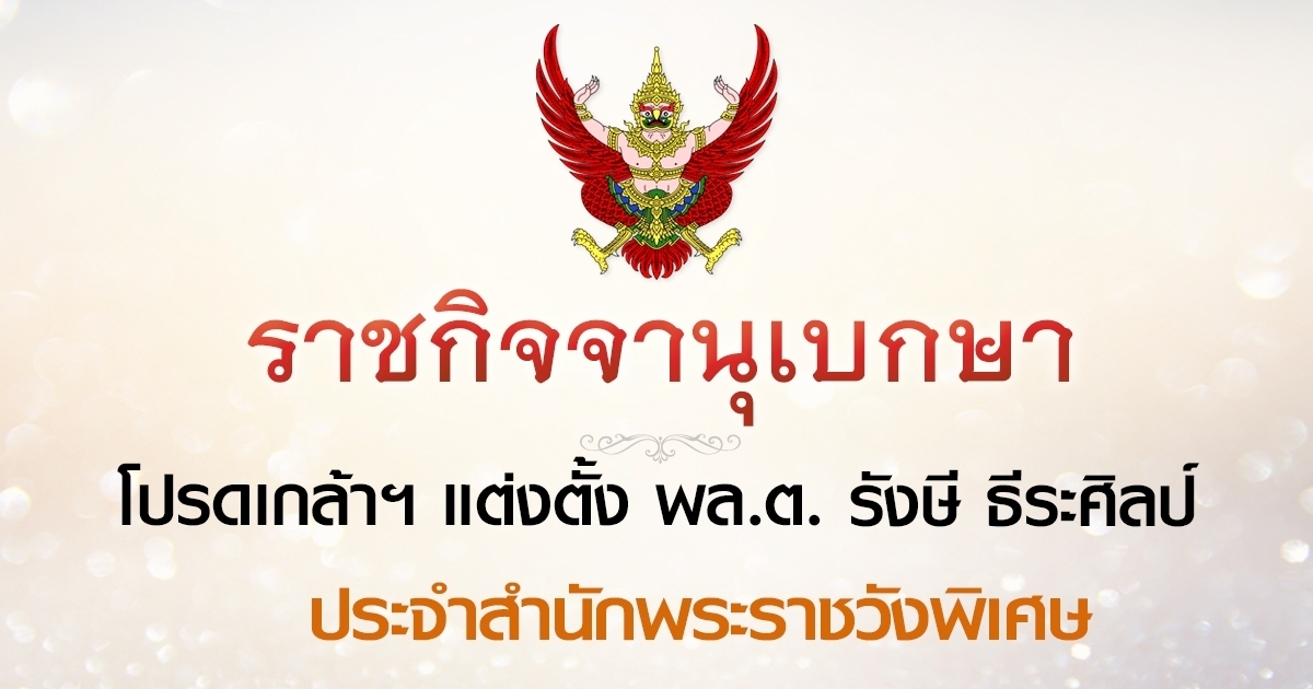 จึงทรงพระกรุณาโปรดเกล้าโปรดกระหม่อมแต่งตั้ง พล.ต. รังษี ธีระศิลป์ ข้าราชการในพระองค์ฝ่ายพลเรือน ให้ดำรงตำแหน่ง ประจำสำนักพระราชวังพิเศษ ระดับ 10 โดยให้นับเวลาราชการต่อเนื่อง