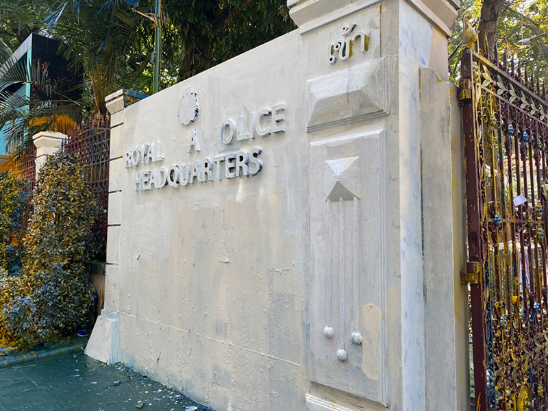 วันที่ 19 พฤศจิกายน 2563 ผู้สื่อข่าวรายงานว่า เมื่อเวลา 11.00 น. ที่บริเวณถนนพระราม 1 นายเสฏฐนันท์ ราฟาเอล เตชะวิบูลย์ น้องชายไฮโซปลาวาฬ วรสิทธิ์ เตชะวิบูลย์ เจ้าของโรงแรมศรีพันวา ภูเก็ต ได้นำสีสเปรย์ และถังสี มาที่หน้าสำนักงานตำรวจแห่งชาติ เพื่อมาพ่นลบข้อความไม่เหมาะสมรอบกำแพงและบนทางเท้า หลังกลุ่มผู้ชุมนุมสาดสีเมื่อคืนวานนี้
