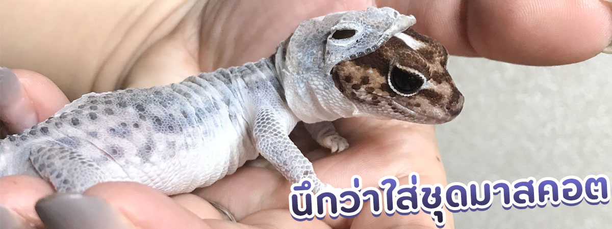 มองเผิน ๆ อาจนึกว่าโดนงับ หรือใส่ชุดแฟนซี แต่จริง ๆ แล้ว ตุ๊กแกเสือดาวกำลังลอกคราบอยู่
