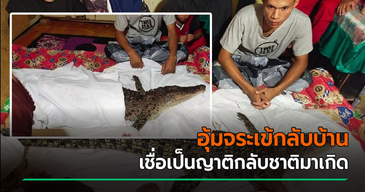 หนุ่มอินโดนีเซียเจอจระเข้สภาพร่อแร่ รีบอุ้มกลับบ้านมาเลี้ยง เอาผ้าห่มให้อย่างทะนุถนอม เชื่อเป็นญาติผู้ใหญ่ที่ตายไปแล้ว กลับชาติมาเกิด