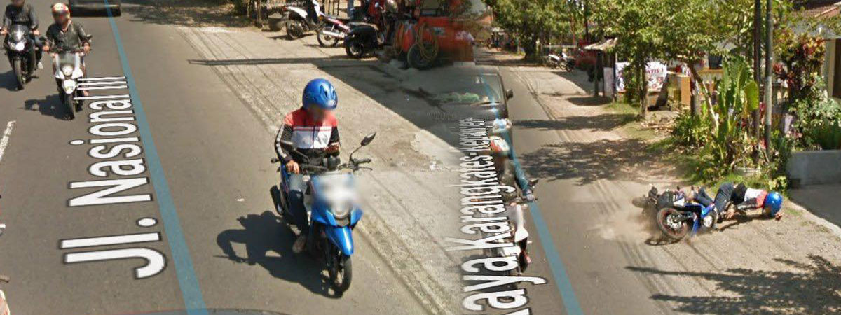 เฟซบุ๊กเพจ ที่ไหนก็ได้บนโลกนี้ ได้แชร์ภาพจาก Google Maps กำลังดูแผนที่เพลิน ๆ ดันมาสะดุดตรงภาพมอเตอร์ไซค์ล้มข้างทางนี่แหละ ไม่รู้ว่า Google จะอัปเดตแผนที่เมื่อไหร่ แต่ภาพนี้จะกลายเป็นตำนานอย่างแน่นอน...