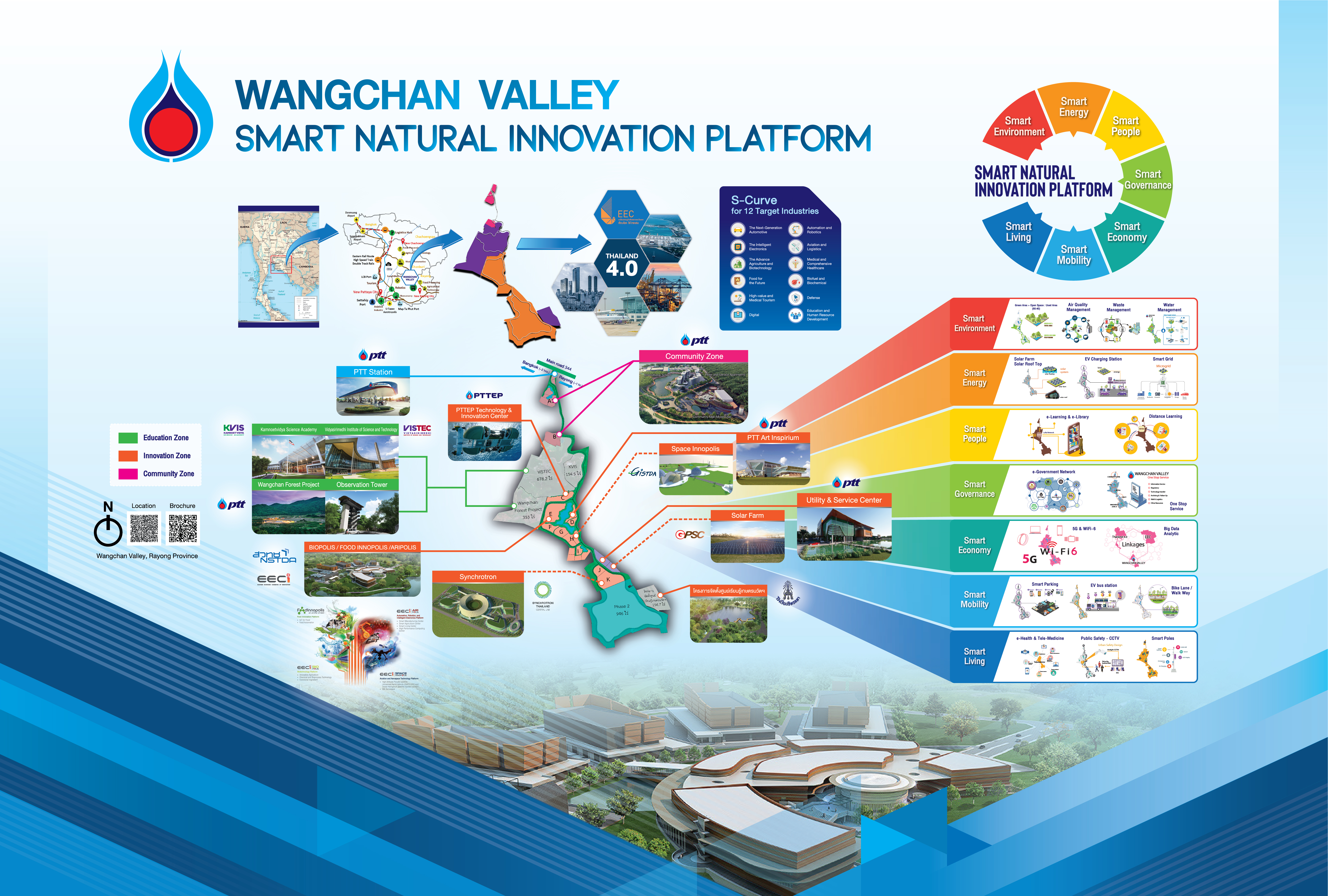 จากกระแสความตื่นตัวการสร้างเมืองอัจฉริยะจากทั่วโลก ประเทศไทยก็มีการขับเคลื่อนเมืองอัจฉริยะอย่างจริงจังด้วยเช่นกัน โดยนำร่องในพื้นที่วังจันทร์วัลเลย์ จังหวัดระยอง ซึ่งเป็นฐานที่ตั้งสำคัญของเขตนวัตกรรมระเบียงเศรษฐกิจพิเศษภาคตะวันออก (EECi) ที่พัฒนาภายใต้รูปแบบ Smart Natural InNovation Platform แบ่งออกเป็น 3 โซน ได้แก่