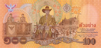 - เชิญพระปฐมบรมราชโองการไว้ที่เบื้องขวาของธนบัตร