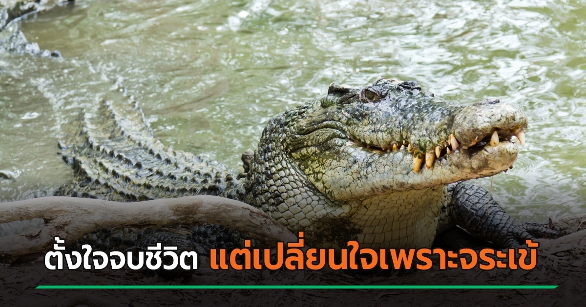 รอดตายเพราะจระเข้ หญิงทุกข์ใจหนักกระโดดน้ำหวังจบชีวิต แต่เปลี่ยนใจนาทีสุดท้าย รีบว่ายน้ำกลับขึ้นฝั่งหลังเห็นจระเข้
