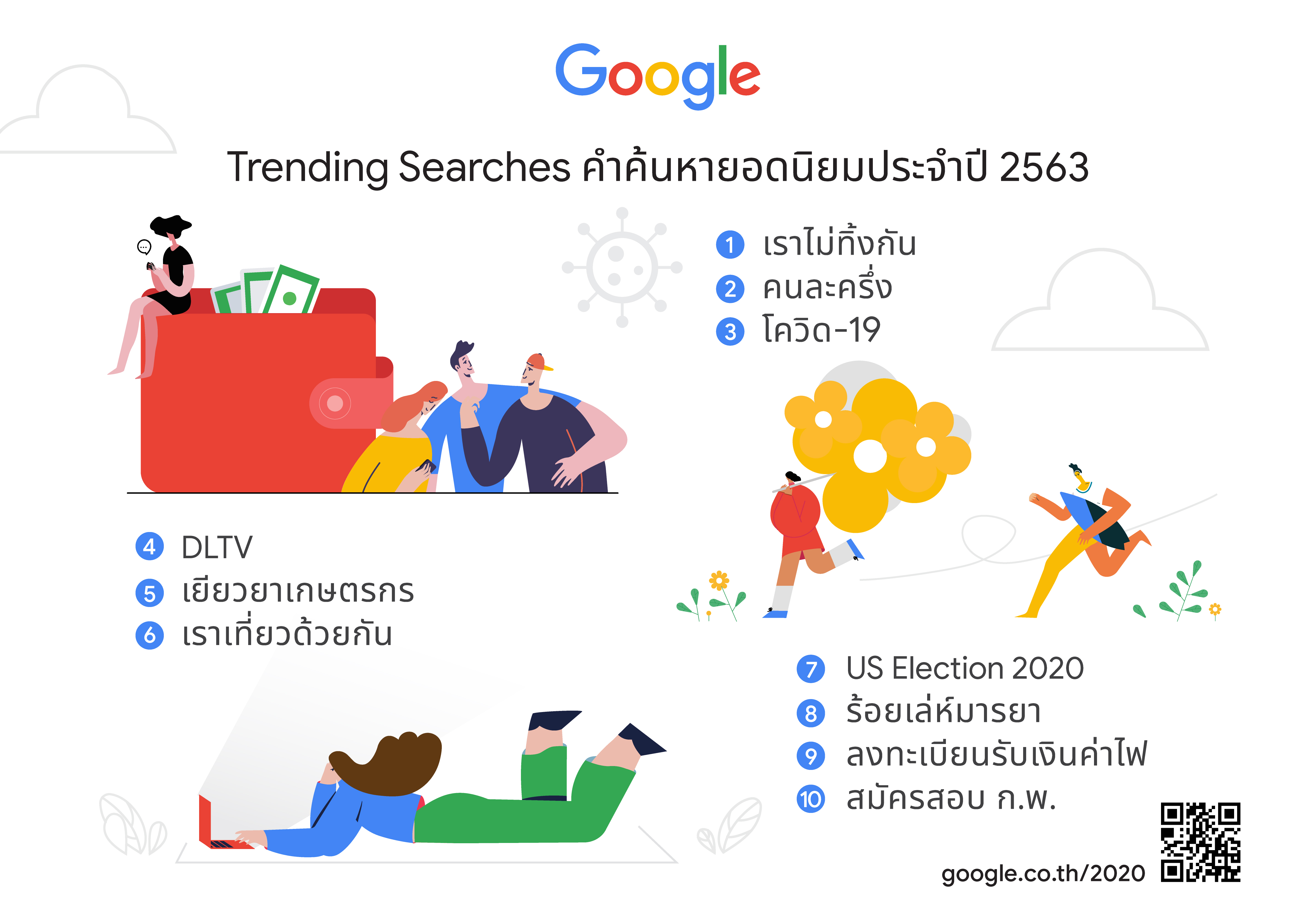 Google เปิดเผยคำค้นหายอดนิยมประจำปี 2563 ที่คนค้นหามากที่สุดในประเทศไทย เราไม่ทิ้งกัน ทะยานขึ้นที่ 1 ตามมาด้วย คนละครึ่ง และ โควิด-19 ส่วนจะมีอะไรอีกบ้าง ตามไปดูกัน
