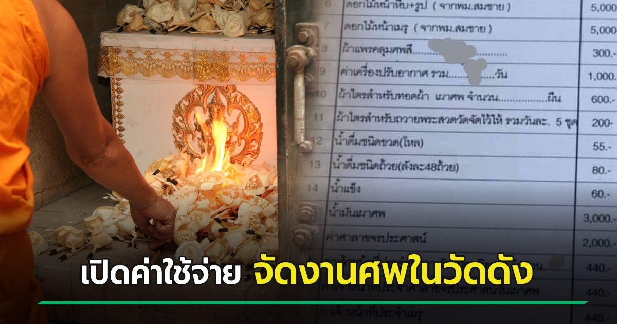 เปิดค่าใช้จ่ายจัดงานศพในวัดดัง ทุกสิ่งทุกอย่างไม่มีคำว่าฟรี ค่าเต็นท์ ค่าแอร์ ค่าผ้าไตร ค่าเก็บขยะ ทุกอย่างเป็นเงินเป็นทองหมด กระทั่งถ้านำโลงศพมาเองยังต้องเสียค่าวาง ตกใจเลย