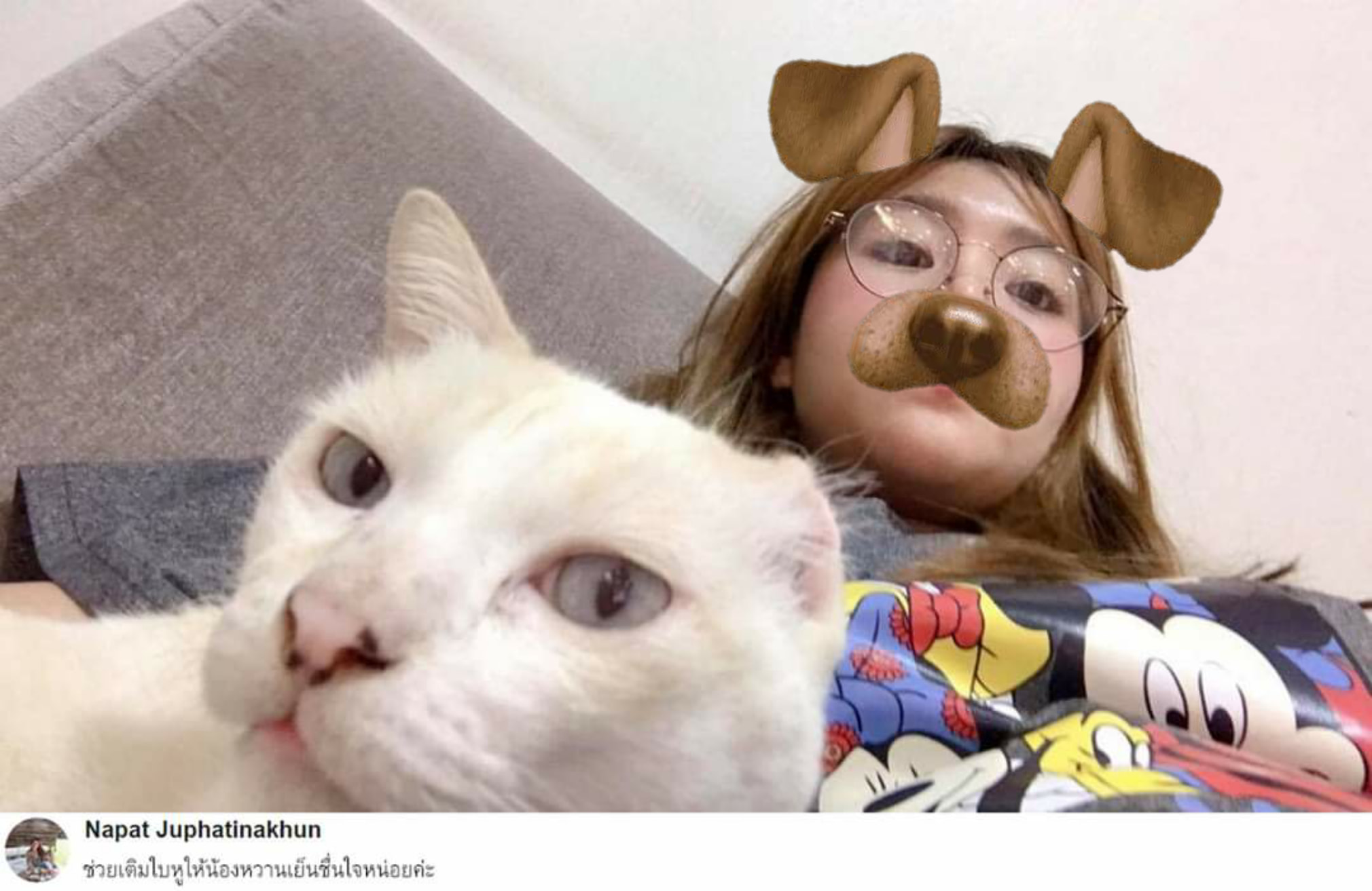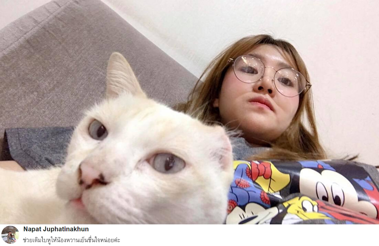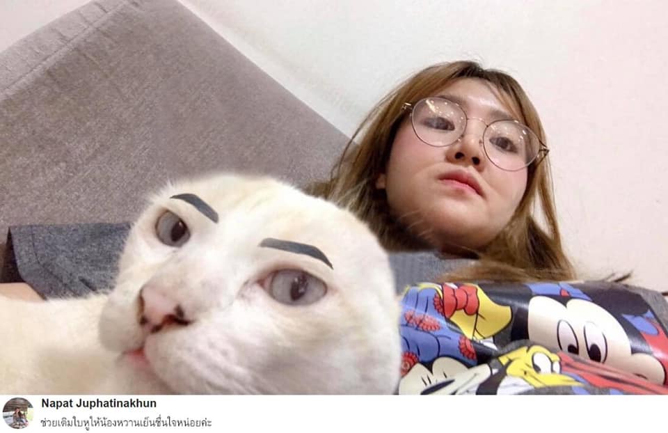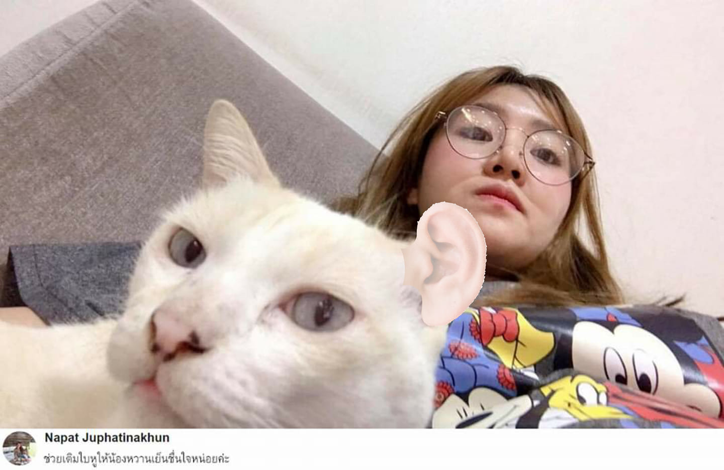 โซเชียลแห่ตัดต่อรูปเจ้าเหมียวจนเป็นไวรัล หลังผู้ใช้เฟซบุ๊ก Napat Juphatinakhun ออกมาโพสต์ภาพของเธอคู่กับเจ้าเหมียว พร้อมแคปชั่น "ช่วยเติมใบหูให้น้องหวานเย็นชื่นใจหน่อยค่ะ" ผ่านแฟนเพจ รบกวนตัดต่อภาพนี้ให้หน่อยสิ จนชาวเน็ตต่างเข้ามาคอมเมนต์และตัดต่อภาพให้กับเธอนับร้อยคอมเมนต์