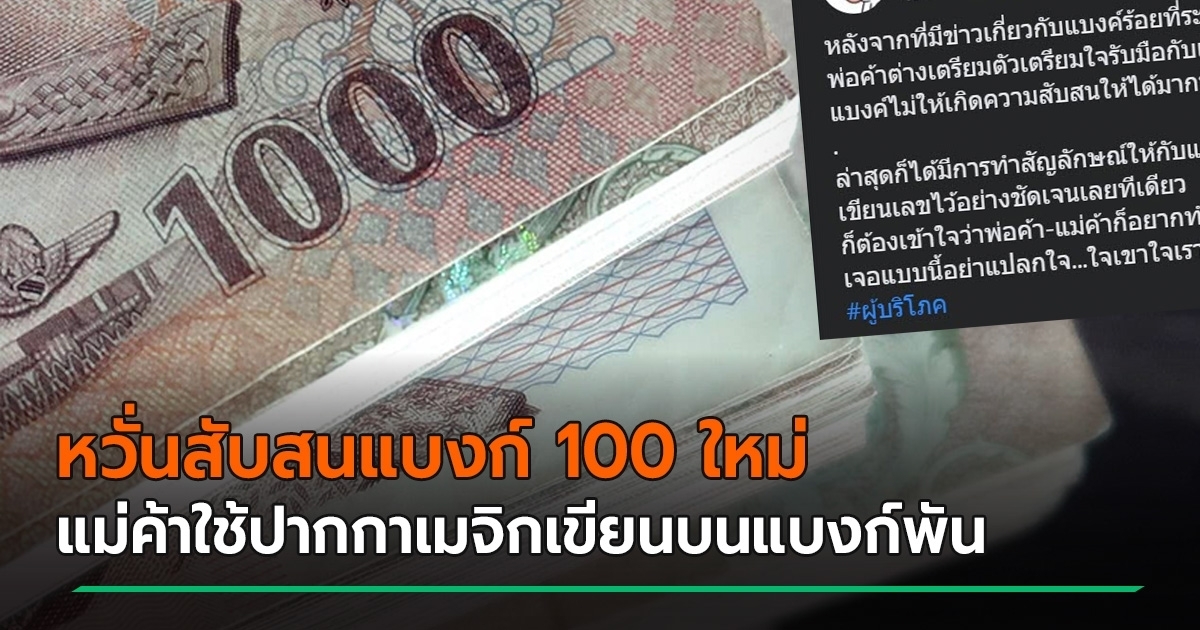 เกี่ยวกับเรื่องนี้ วันที่ 20 ธันวาคม 2563 เพจเฟซบุ๊ก ผู้บริโภค ได้เผยภาพธนบัตร 1,000 บาท ถูกเขียนเลขเอาไว้ขนาดใหญ่ด้วยปากกาสีดำ โดยคาดว่าน่าจะเกิดจากการที่แม่ค้าพ่อค้าทำเพื่อตัดปัญหาการทอนเงินผิดพลาดหลังปรากฏเป็นข่าวบ่อยครั้งในช่วงที่ผ่านมา