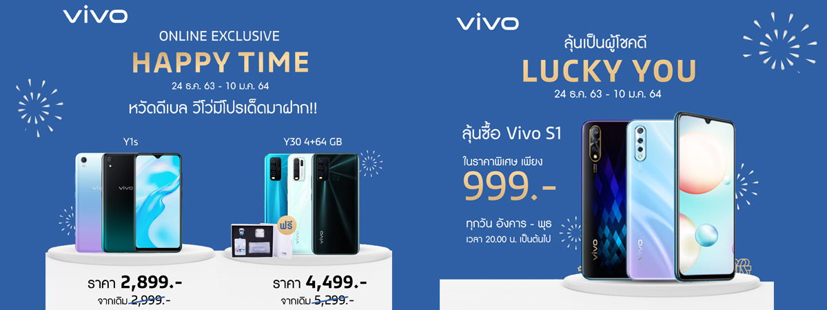 และยังมีมือถืออีก 2 รุ่นที่เป็น Online Excusive จัดมาลดราคาเอาใจแฟนๆ รุ่นแรก Y30 (4+64GB) เหลือเพียง 4490 บาทเท่านั้น และรุ่นเล็กสเปคแรงที่ขายดีเป็นเทน้ำเทท่า อย่างรุ่น Y1S ราคาปกติก็ถูกอยู่แล้ว ยังลดอีกเหลือเพียง 2,899 บาท คุ้มกว่านี้ ไม่มีอีกแล้ว อย่ารอช้ารีบไปซื้อกันได้เลย ซื้อเลยที่