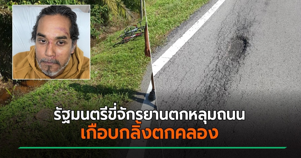 รัฐมนตรีมาเลเซีย ขี่จักรยานตกหลุมถนน ล้มหน้าทิ่ม หวิดกลิ้งตกคลอง กรมโยธาฯ โร่ขอโทษ พร้อมลงพื้นที่ซ่อมโดยด่วน