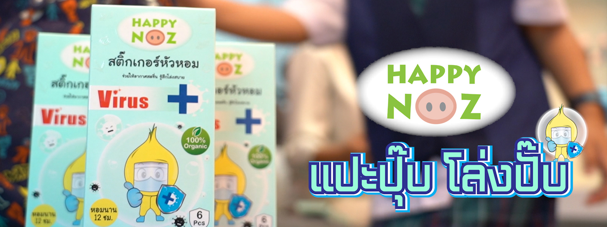 นั่นจึงเป็นที่มาของ สุดยอดนวัตกรรมฝีมือคนไทย ที่ชื่อว่า สติ๊กเกอร์หัวหอม Happy Noz สูตรป้องกันไวรัส (Happy Noz Virus Protection) ผลิตภัณฑ์ที่มีส่วนผสมของสารเควอซีทีน (Quercetin) จากหัวหอม และสารเคอร์คูมิน (Curcumin) จากขมิ้นชัน ที่ได้รับการทดสอบยืนยันจากสถาบันสุขภาพชั้นนำระดับโลก ที่ประเทศอังกฤษแล้วว่า สามารถฆ่าเชื้อไวรัสโคโรน่า ได้ 99.9% ภายใน 30 วินาที