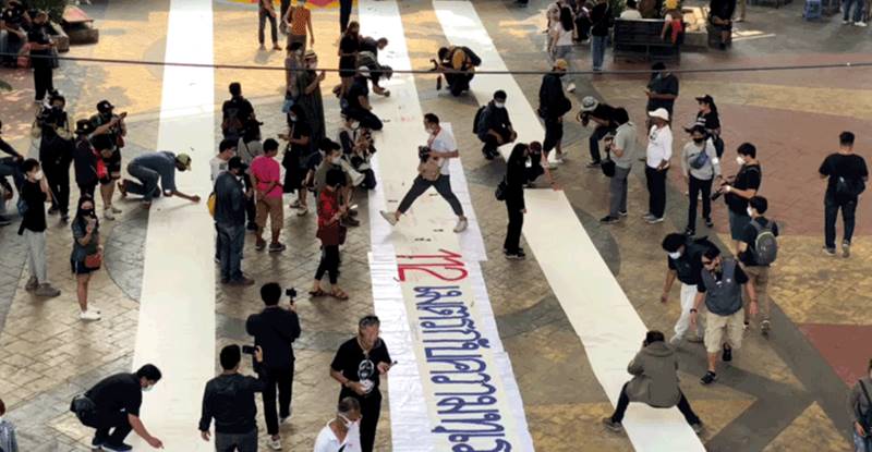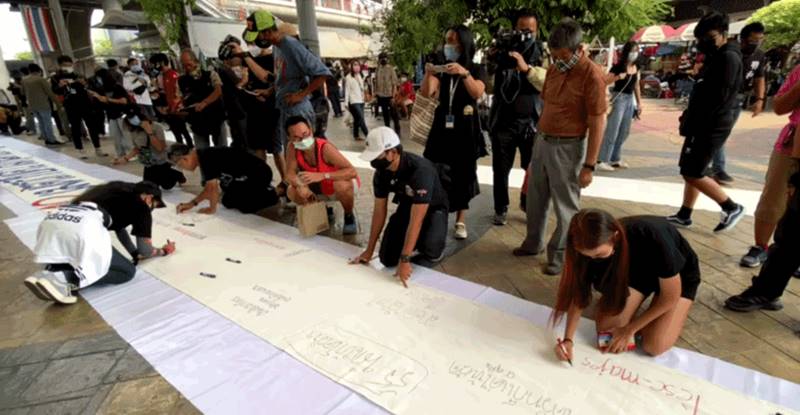 วันนี้จะมีการจัดกิจกรรมเขียนป้ายผ้าเพื่อรณรงค์ยกเลิก ม.112 ทว่าเมื่อเวลา