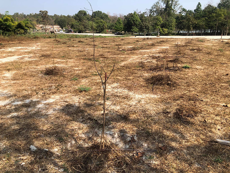 จากการตรวจสอบ พบว่า มีอัตรารอดตายถึงร้อยละ 80 จากทั้งหมดประมาณ 60 ต้น ส่วนสาเหตุที่รดน้ำทุกวัน เนื่องจากสภาพพื้นที่เป็นป่าเต็งรัง ดินที่ใช้ถมและปลูกเป็นดินจากแม่น้ำ สารอาหารในดินหรือการอุ้มน้ำ ไม่ดีเท่าที่ควร มาตรการทั้งหมดจึงถูกนำมาใช้แก้ไขให้ดีที่สุดจนต้นไม้รอดตาย หลังจากนี้คาดว่าต้นไม้จะผลัดใบเร็วขึ้น