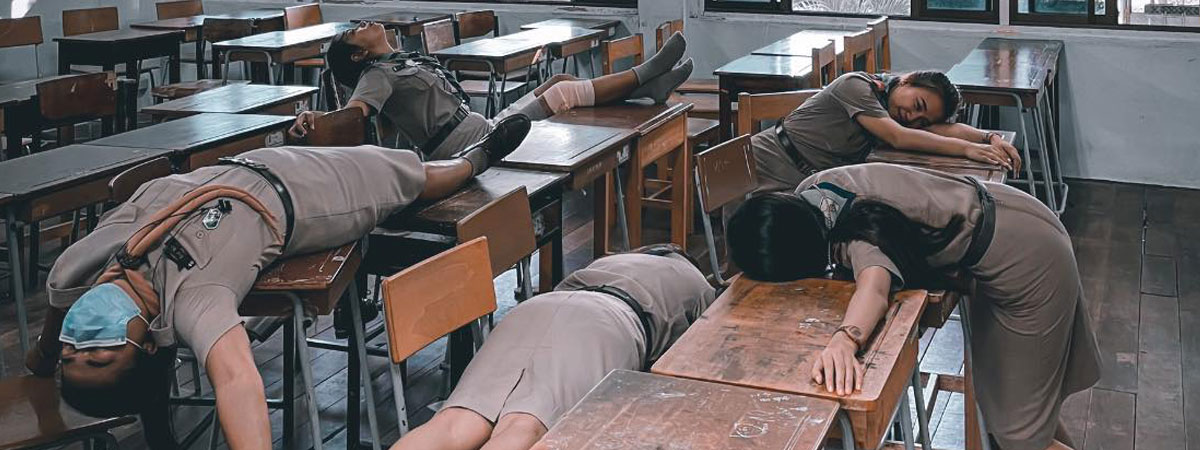 เฟซบุ๊ก วาย' ดับเบิ้ลอี ได้เผยภาพโมเมนต์ขำ ๆ ของคุณครูจาก โรงเรียนเกาะพะงันศึกษา จ.สุราษฎร์ธานี ที่ลงทุนลงไปนอนกับพื้นตามที่ต่าง ๆ ในโรงเรียน เล่นใหญ่จัดเต็ม จนกลายเป็นภาพไวรัลดังบนโลกออนไลน์ นี่สินะที่มาของคำว่า เป็นครูสบายจะตาย...