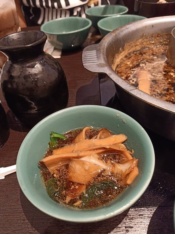 ทั้งนี้ ทางร้านได้เสิร์ฟอาหารด้วยการที่ยกหม้อซุปแบ่งออกเป็น 2 ฝั่ง ฝั่งหนึ่งเป็นน้ำซุปสีดำ อีกฝั่งเป็นน้ำซุปใส ซึ่งหนุ่มที่รีวิวบอกว่า พอต้มเนื้อแล้วซดน้ำฝั่งสีดำ สรุปคือน้ำเค็มปี๋ ซดไปเรื่อย ๆ น้ำก็ยังเค็มอยู่ น้ำจิ้มก็มีตัวเลือกน้อย น้ำจิ้มและน้ำซุปสำรองก็มาในไห จนไม่รู้ไหไหนน้ำจิ้ม ไหไหนน้ำซุป สรุปเททุกอย่างลงหม้อ กลายเป็นความเละเทะ