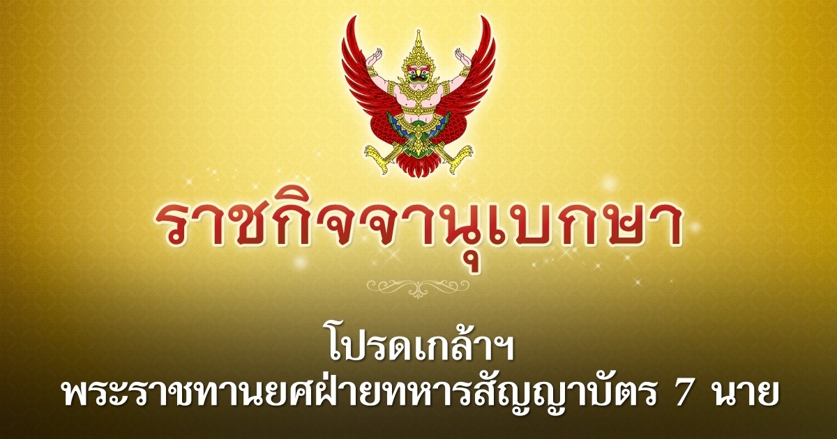จึงทรงพระกรุณาโปรดเกล้าโปรดกระหม่อมพระราชทานยศฝ่ายทหารสัญญาบัตรต่ำกว่าชั้นนายพล จำนวน 7 นาย ดังนี้