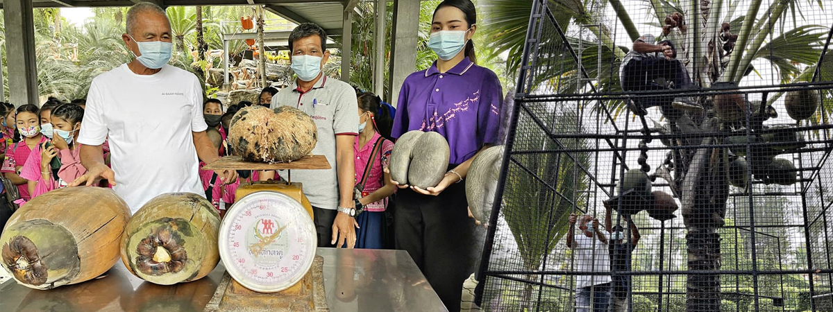 สำหรับมะพร้าวทะเลต้นนี้อายุประมาณ 30 กว่าปี เป็นต้นที่มีความแข็งแรงสมบูรณ์ ผลดก และผลใหญ่มาก ซึ่งคาดว่าใน 1 ผล จะมีเมล็ดอยู่ด้านในมากกว่า 1 เมล็ด