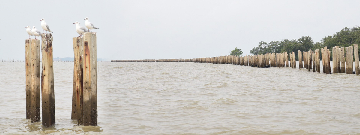 ด้วยการนำเสาไฟฟ้าที่รื้อถอนจากโครงการเปลี่ยนระบบสายไฟฟ้าอากาศเป็นสายไฟฟ้าใต้ดินในโครงการต่าง ๆ ที่ไม่ใช้แล้ว รวมถึงเสาไฟฟ้าที่ชำรุด และยางรถยนต์เก่า นำมาทำเป็นแนวป้องกันการกัดเซาะชายฝั่ง ดักตะกอน เป็นระยะทางกว่า 1,700 เมตร พร้อมทั้งดำเนินการปักเสาฯ เพิ่มอีก 2 จุด ฝั่งเหนือ-ฝั่งใต้ จุดละ 250 เมตร รวมระยะทางกว่า 2,200 เมตร เพื่อปิดหัว-ท้ายของแนวปักเสาฯ เดิมนั้น ล่าสุด ได้ดำเนินการปักเสาฯ ฝั่งเหนือเสร็จเรียบร้อยแล้ว และขณะนี้อยู่ระหว่างการปักเสาฯ ฝั่งใต้ โดยมีกำหนดแล้วเสร็จภายในเดือนกุมภาพันธ์ 2564