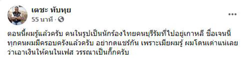 อย่างไรก็ตามเมื่อตรวจสอบไปยังเฟซบุ๊กของหนุ่มใหญ่รายนี้ หลายคนมองว่าเจ้าตัวอาจจะสร้างเรื่องขึ้นมาเพื่อความสนุกส่วนตัว และสร้างกระแสในโลกออนไลน์ซะมากกว่า เพราะดู ๆ แล้วเขาก็น่าจะรู้จักวง BLACKPINK เพราะเห็นเคยโพสต์รูปลิซ่าเหมือนกัน