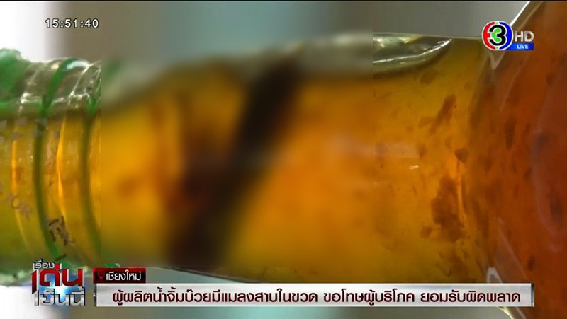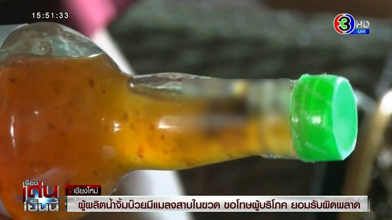 วันที่ 2 มีนาคม 2564 One31 รายงานว่า นางกัญชพร สุจริตธรรม อายุ 51 ปี เจ้าของร้านค้าส่งใน อ.แม่ริม จ.เชียงใหม่ ได้นำขวดน้ำจิ้มบ๊วยยี่ห้อดัง ที่มีโรงงานผลิตที่จังหวัดเชียงราย และส่งขายทั่วประเทศไทย มาให้นักข่าวดู โดยพบว่า ขวดน้ำจิ้มบ๊วยยังคงมีพลาสติกซีลตรงฝา แต่กลับพบแมลงสาบลอยอยู่ภายในขวด จึงเกิดความสงสัยว่า แมลงสาบเข้าไปได้อย่างไร