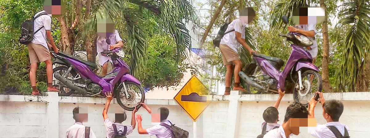เฟซบุ๊ก Pee Boonthung ได้เผยภาพวิธีการโดดเรียนแบบใหม่เพื่อเข้ากับปี 2021 โดดเรียนธรรมดาโลกไม่จำ โดยปกติเราจะเห็นนักเรียนปีนข้ามรั้วกัน แต่สำหรับนักเรียนกลุ่มนี้ช่วยกันยกมอเตอร์ไซค์ข้ามกำแพง ทำเอาชาวเน็ตอึ้งกันทั้งโซเชียล