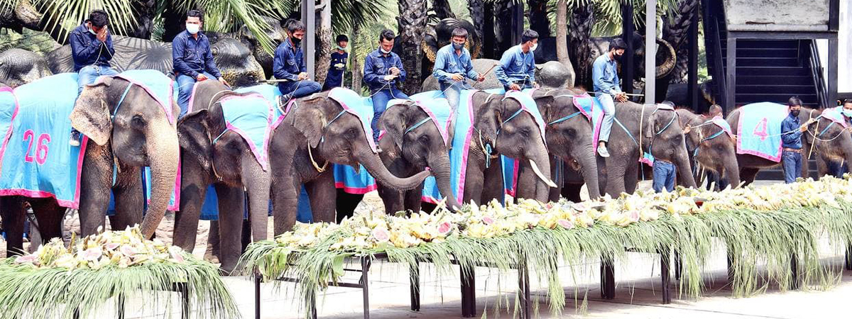 เลขาธิการแห่ง Unescap ร่วม คณะฑูต 13 ประเทศ มอบเงินสนับสนุนค่าอาหารช้างและเวชภัณฑ์ ให้แก่สถาบันคชบาลแห่งชาติ ด้านสวนนงนุชพัทยา เปิดโต๊ะจีนบุฟเฟ่ต์ผลไม้ เนื่องในวันช้างไทย