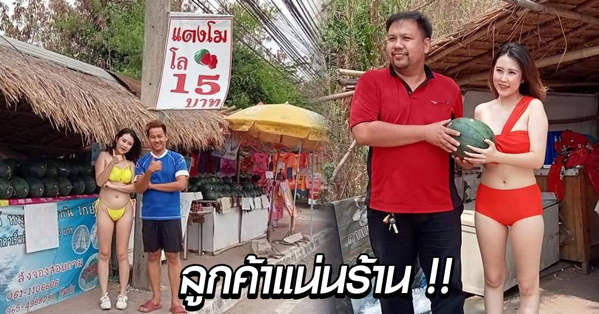 เฟซบุ๊กเพจ ช็อตนี้ต้องดู ได้เผยภาพร้านขายแตงโมแห่งหนึ่งในลำปาง ที่ดึงกลยุทธ์การขายแบบใหม่ เพื่อดึงลูกค้าเข้ามาซื้อแตงโมให้ได้มากที่สุด โดยแม่ค้าจ้างให้สาวสวยใส่ชุดว่ายน้ำขายซะเลย หนุ่ม ๆ พากันเข้าร้านเพียบ !!