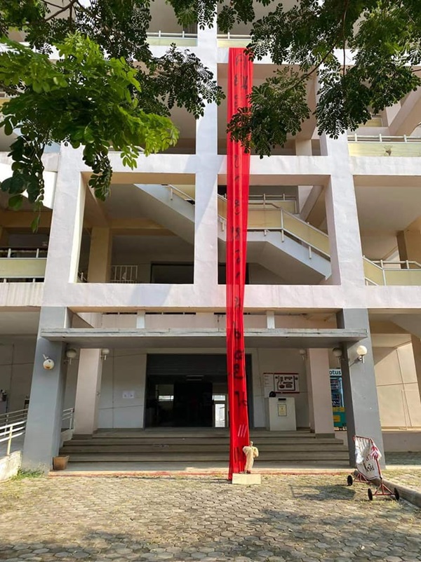 นอกจากนี้ยังพบผ้าสีแดงขนาดยาวเขียนข้อความว่า "คณบดีหวานเย็น" แปะพาดอยู่บริเวณหน้าตึกคณะอีกด้วย