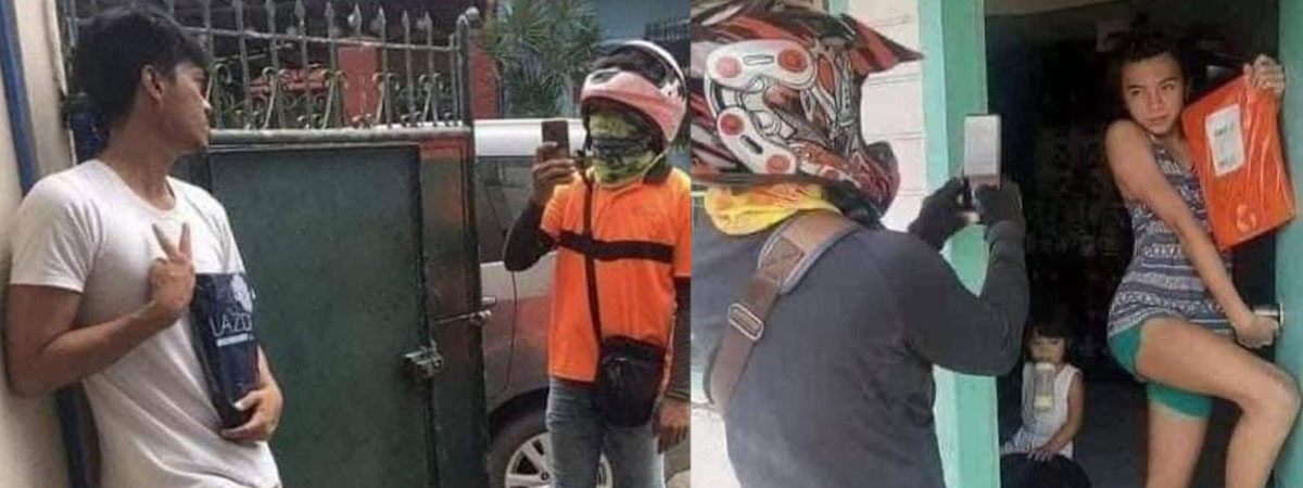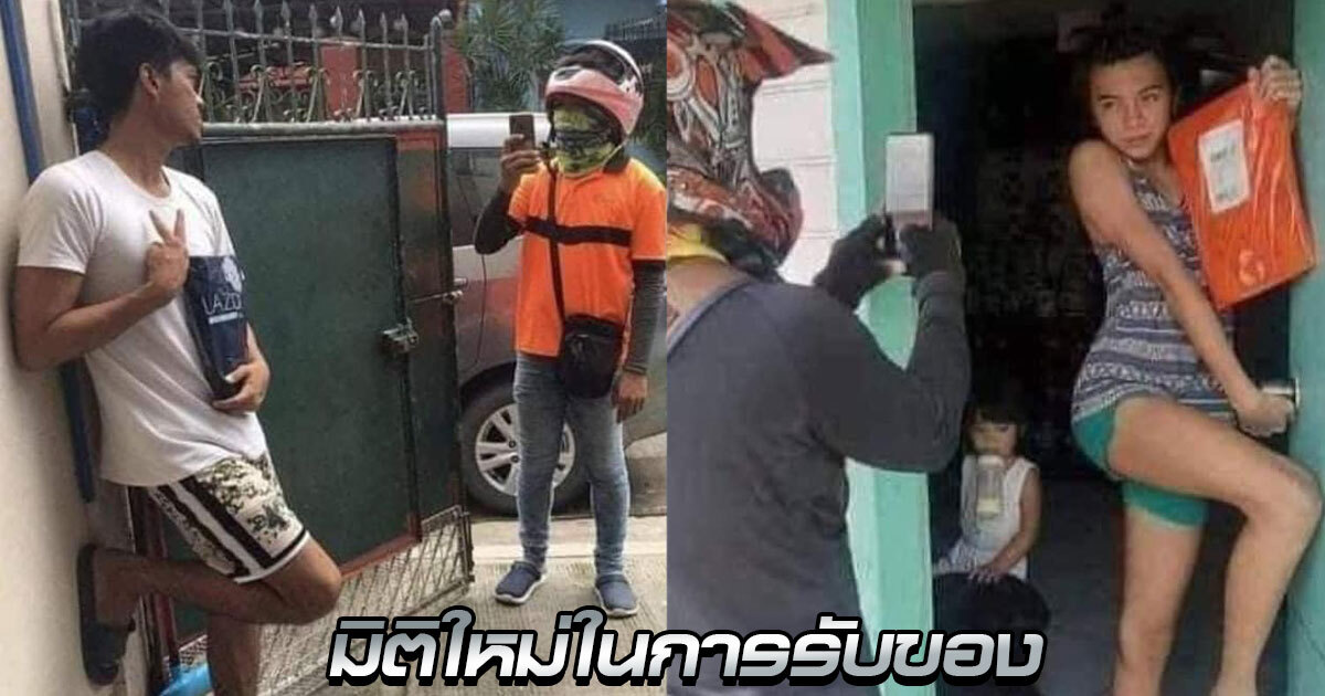 เฟซบุ๊กเพจ Asians ได้เผยภาพเทรนด์ใหม่ที่กำลังมาในฟิลิปปินส์ หลังจากที่พนักงานส่งพัสดุถึงมือลูกค้า ต้องถ่ายรูปไว้เป็นหลักฐานว่าของถึงมือแล้วจริง ๆ ต้องบอกเลยว่า ท่าโพสของลูกค้าจัดหนักจัดเต็ม ราวกับถ่ายแบบเลยทีเดียว