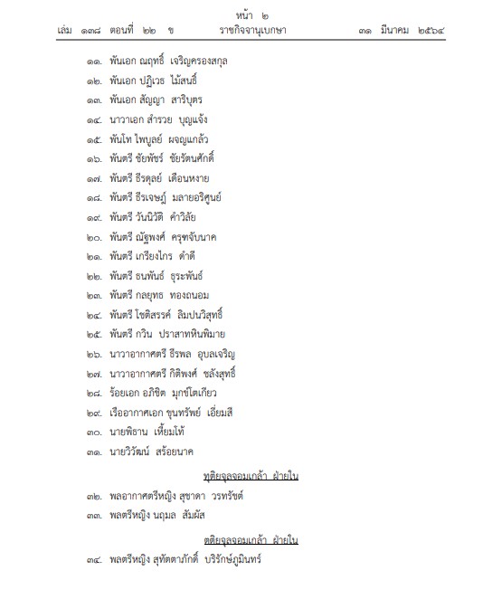 ทั้งนี้ ตั้งแต่วันที่ 25 มีนาคม พุทธศักราช 2564 ยกเว้นลำดับที่ 10 และลำดับที่ 16 ตั้งแต่วันที่ 22 มีนาคม พุทธศักราช 2564 ลำดับที่ 36 ถึงลำดับที่ 37 และลำดับที่ 46 ถึงลำดับที่ 47 ตั้งแต่วันที่ 27 มีนาคม พุทธศักราช 2564 ลำดับที่ 15 และลำดับที่ 27 ถึงลำดับที่ 28 ตั้งแต่วันที่ 28 มีนาคม พุทธศักราช 2564 ลำดับที่ 2 ถึงลำดับที่ 4 ตั้งแต่วันที่ 29 มีนาคม พุทธศักราช 2564 ประกาศ ณ วันที่ 31 มีนาคม พุทธศักราช 2564 เป็นปีที่ 6 ในรัชกาลปัจจุบัน
