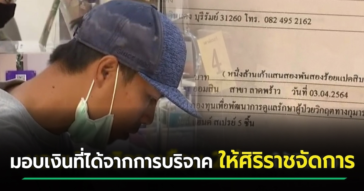 พ่อนำเงินช่วยลูก 11 เดือนโดนน้ำมันราดหัว นำเงินที่ได้จากการบริจาคทั้งหมด 1.9 ล้าน มอบให้ศิริราช เป็นผู้จัดการเงินส่วนนี้ ยืนยันไม่มีเจตนาหลอกลวง