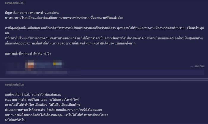 ทั้งนี้ หลังกระทู้เผยแพร่ออกไปก็มีคนเข้ามาตอบคำถามและแสดงความคิดเห็นจำนวนมาก มีทั้งที่เห็นใจและเข้าใจเจ้าของกระทู้ เพราะผู้สูงอายุบางคนอาจคิดว่าตัวเองแก่หรืออยู่มาก่อน ทำอะไรจะถูกต้องเสมอ และมองว่าการตักเตือนของเจ้าของกระทู้ไม่ผิด ไม่บาป เพราะถือว่ามีกุศลจิตช่วยปฏิบัติหลักสงเคราะห์ (สังคห) เช่น ให้วิทยาทาน ติเพื่อก่อ การมีอัตถจริยาช่วยเหลือในทางใด ๆ การให้ธรรมทานข้อคิดที่ดี ฯลฯ เพื่อให้พ่อแม่หยุดละพฤติกรรมส่วนตัวที่ควรแก้ไข นั้นถือเป็นบุญกุศลโดยหลัก