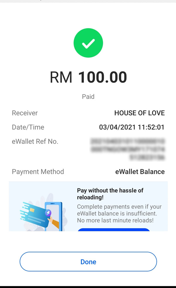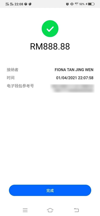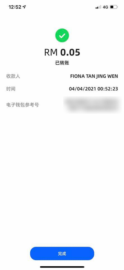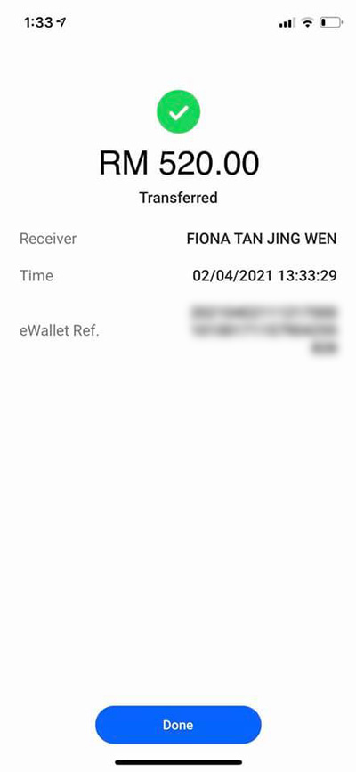 โดยบางยอดก็มาเป็นเงินจำนวนเล็กน้อย ราว 0.05 ริงกิต (ไม่ถึง 0.5 บาท) และ 30 ริงกิต (ราว 220 บาท) แต่ก็มีบางคนที่โอนเงินให้มากถึง 250 ริงกิต (ราว 3,900 บาท) นอกจากนี้เธอยังได้รับเงินอีก 100 ริงกิต (ราว 750 บาท) จากเพื่อน ๆ ที่รู้จักกันเป็นส่วนตัวด้วย