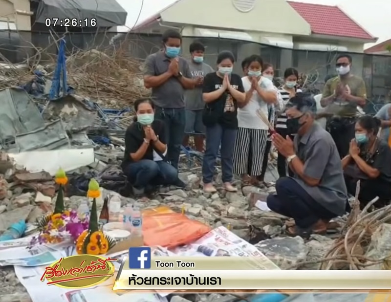ขณะที่ครอบครัวของทอมมี่ ผู้เสียชีวิตที่ติดค้างในอาคาร ทางคุณพ่อได้เดินทางไปรับศพของลูกชายที่นิติเวชโรงพยาบาลศิริราช และนิมนต์พระมาอัญเชิญดวงวิญญาณไปที่วัดท่าพูด เพื่อรับน้ำหลวงอาบศพ