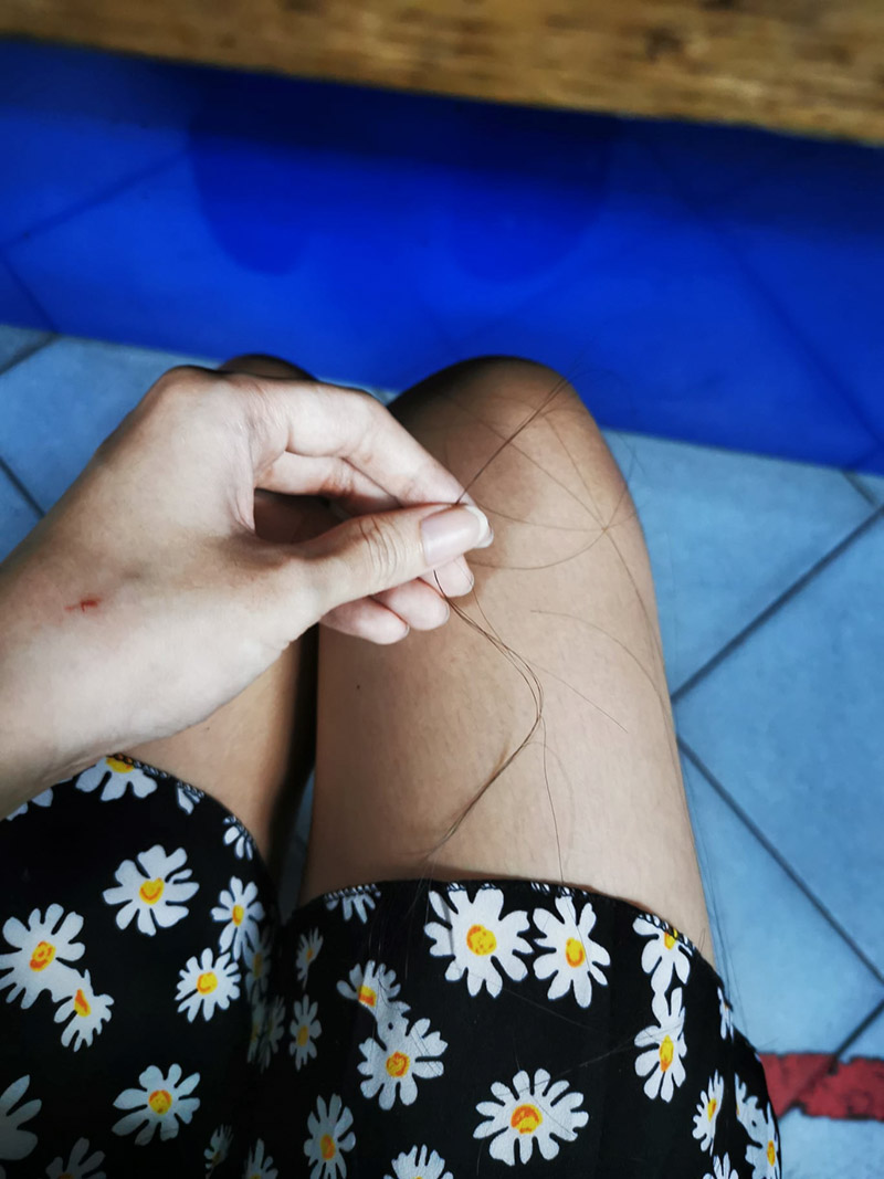 คนขับมอเตอร์ไซค์เป็นผู้ชายสวมหมวกกันน็อกเต็มใบปิดบังใบหน้า พยายามจะเข้ามาพูดคุยกับเธอ ได้ยินประมาณว่า "ผมต้องการ...กับคุณ" เมื่อเห็นท่าไม่ดี เธอจึงรีบปิดกระจกทันที แต่ชายคนนั้นรีบลงจากรถมอเตอร์ไซค์มาแล้วถอดเข็มขัดปลดกางเกงโชว์ของลับ