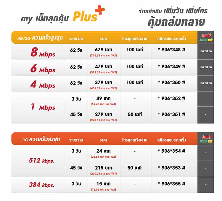 - 1 Mbps : เล่นเน็ต แชท แชร์ โซเชี่ยลได้ไม่อั้น