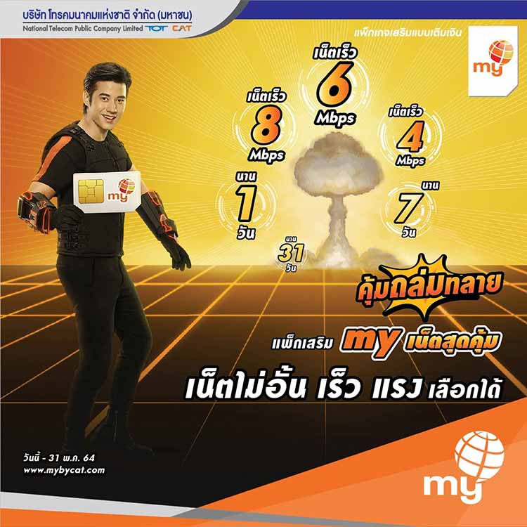 สมัครใช้บริการ my ได้แล้ววันนี้ ที่สำนักงานบริการลูกค้า NT Shop และตัวแทนจำหน่ายทั่วประเทศ รายละเอียดเพิ่มเติมคลิก www.mybycat.com หรือสอบถาม Call Center โทร 02-401-2222