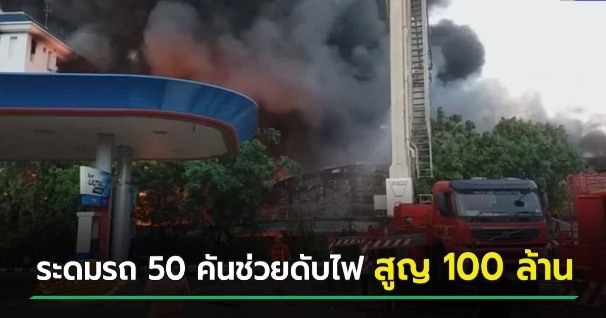ไฟไหม้โรงเก็บน้ำมัน อ้อมใหญ่ ควบคุมเพลิงได้แล้ว ต้องระดมรถดับเพลิงกว่า 50 คันมาช่วย คาดสูญร่วม 100 ล้าน คนรอบข้างกังวลกลัวปั๊มน้ำมันใกล้ ๆ ระเบิด