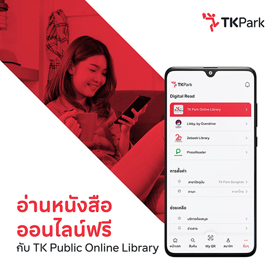 - TK Park Online Library : อ่าน ฟัง ชม และเรียนรู้ทักษะใหม่ ๆ ด้วยห้องสมุดออนไลน์ภาษาไทย ที่รวบรวม eBooks หนังสือเสียง นิตยสาร และคอร์สออนไลน์ จากสำนักพิมพ์ชั้นนำ