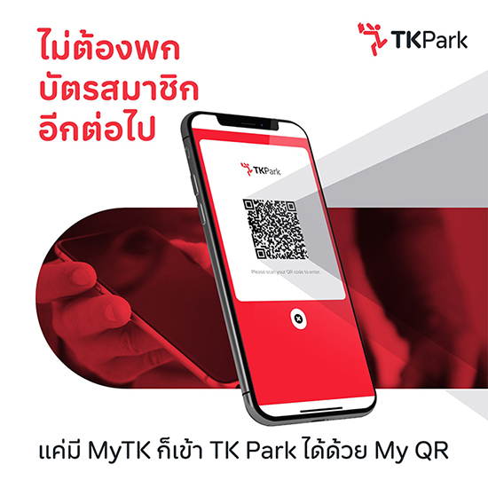 ต่อไปนี้ไม่ต้องพกบัตรสมาชิกแล้ว แค่มีแอปฯ MyTK ไว้ในโทรศัพท์มือถือของคุณ ก็สามารถเข้ารับบริการใน TK Park ได้อย่างสบาย ๆ ด้วยการสแกน My QR ทั้งสะดวก รวดเร็ว แถมยังลดการสัมผัสและความเสี่ยงในช่วงการระบาดของไวรัสโควิด 19 อีกด้วย