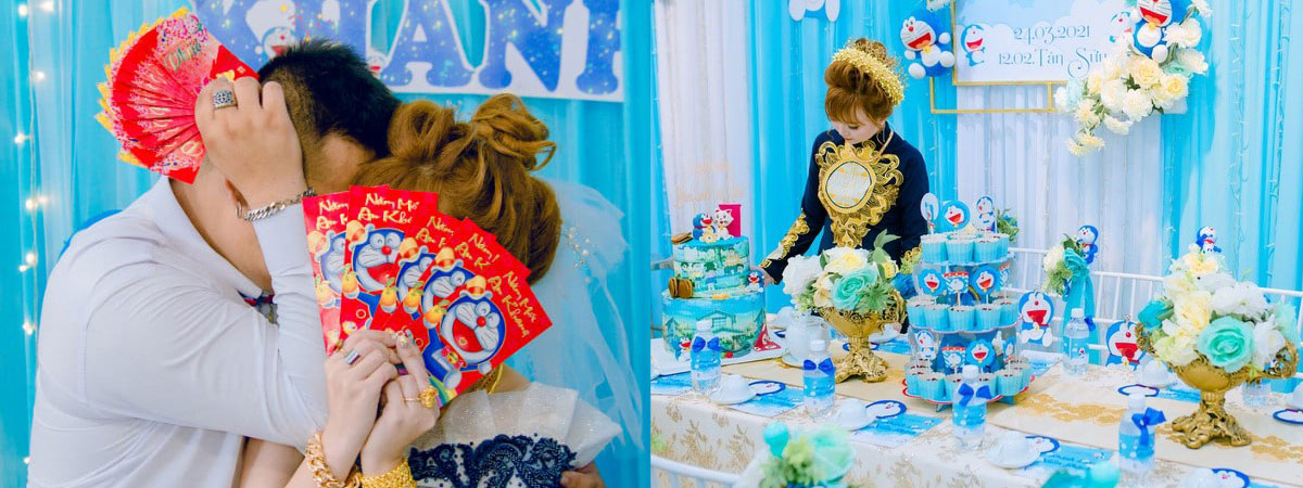กลายเป็นไวรัลบนโลกออนไลน์ งานหมั้นของคู่รักเวียดนาม ที่มาในธีม โดราเอมอน สีสันสีฟ้าสดใสทั้งงาน