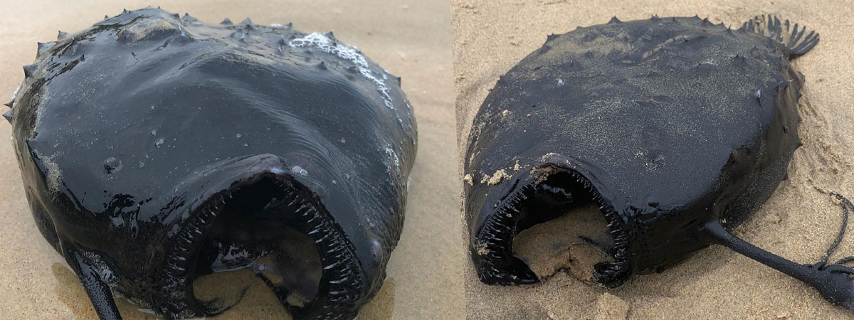 เฟซบุ๊ก Davey's Locker Sportfishing & Whale Watching เผยว่า เจ้าสัตว์ทะเลน้ำลึกขนาดประมาณครึ่งเมตรตัวนี้ ถูกพบบริเวณชายฝั่งอุทยาน Crystal Cove State Park รัฐแคลิฟอร์เนีย มันมีชื่อเรียกว่า ปลาฟุตบอลแปซิฟิก (Pacific Footballfish) เป็นปลาตกเบ็ด (Anglerfish) สายพันธุ์หนึ่งในกว่า 300 สายพันธุ์ที่อาศัยอยู่ใต้ทะเลลึกลงไปกว่า 1 กิโลเมตร โดยตัวที่พบนี้ถือว่าเป็นซากที่สมบูรณ์มาก ๆ ยังคงรายละเอียดทุกอย่างไว้ชัดเจน