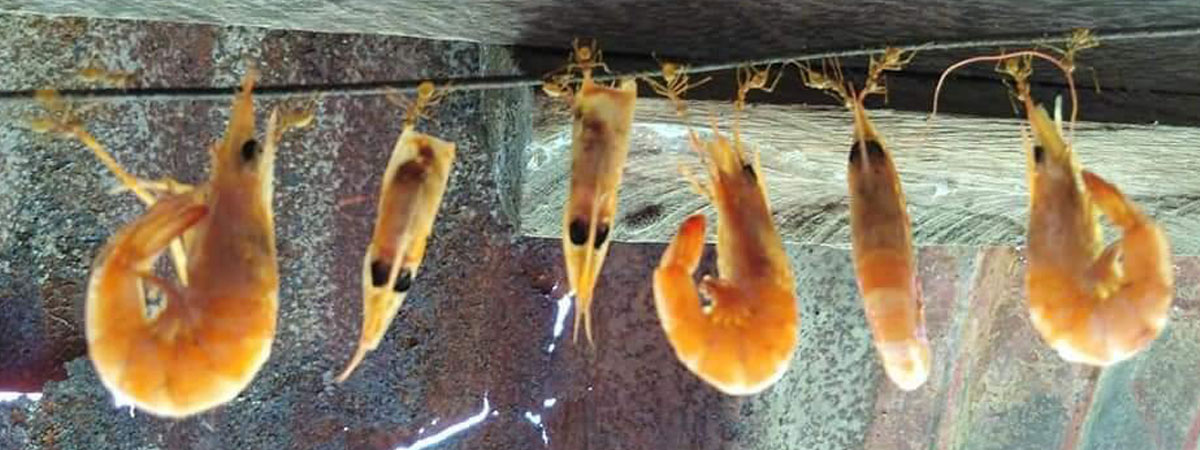 นางพญาต้องได้กินกุ้ง !! ฝูงมดลากกุ้งขึ้นไปตามเสาไม้ เป็นภาพที่น้อยคนจะได้เห็น