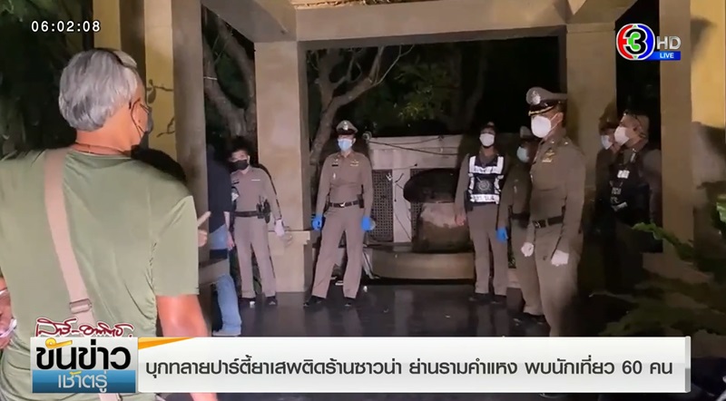 ตร. วังทองหลาง บุกทลายปาร์ตี้ยา-มั่วเซ็กส์ กลุ่มชายรักชาย คาร้านซาวน่าดัง ย่านรามคำแหง 21 จับนักเที่ยว-พนักงานรวมเกินครึ่งร้อย พบของกลางไอซ์-ยาบ้า-ถุงยางใช้แล้ว-เข็มฉีดยาตกเกลื่อนพื้นอื้อ