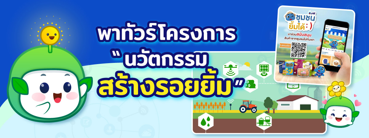 อย่างที่เคยเล่าให้ฟังแล้วว่า โครงการนวัตกรรมสร้างรอยยิ้มกลุ่ม ปตท. มีเป้าหมายที่ต้องการจะเข้าไปแก้ไขปัญหาเศรษฐกิจในชุมชนท้องถิ่นให้ดีขึ้นในระยะยาว เพราะถ้าชุมชนมีความเป็นอยู่ที่ดีขึ้น พื้นที่เล็ก ๆ หลายจุดรวมกันก็จะทำให้ประเทศไทยกลับมาแข็งแกร่งได้อีกครั้ง โดยกลุ่ม ปตท. จะทำงานร่วมกับพนักงานที่ผ่านการฝึกอบรม ชุมชน และหน่วยงานต่าง ๆ โดยแบ่งเป็น 2 สาขาด้วยกัน คือ SMART Marketing และ SMART Farming ซึ่งพี่ ๆ ก็อาจจะเริ่มเห็นผ่านตาในบทความนี้มาบ้างแล้ว และนั่นก็คือสิ่งที่หนูกำลังจะพูดถึงต่อไป