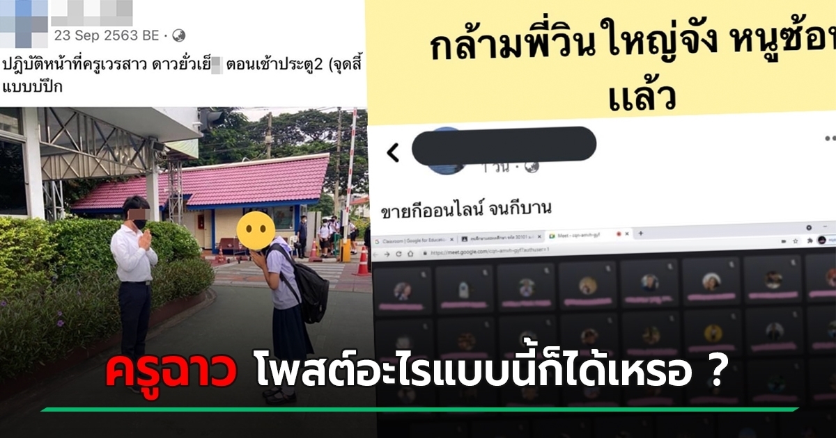 แฉพฤติกรรมครูโรงเรียนชื่อดังย่านลาดพร้าว โพสต์ไม่เหมาะสมลงโซเชียล แอบถ่ายนักเรียนติดแคปชั่นหยาบคายเรื่องเพศ ถ้าเป็นผู้หญิงก็เหยียด ถ้าเป็นผู้ชายก็อ่านกิน ลวนลามยันวินมอเตอร์ไซค์ หลายคนเอือมทำมาหลายปี แต่ยังคงสอนอยู่ จี้โรงเรียนลงโทษได้แล้ว
